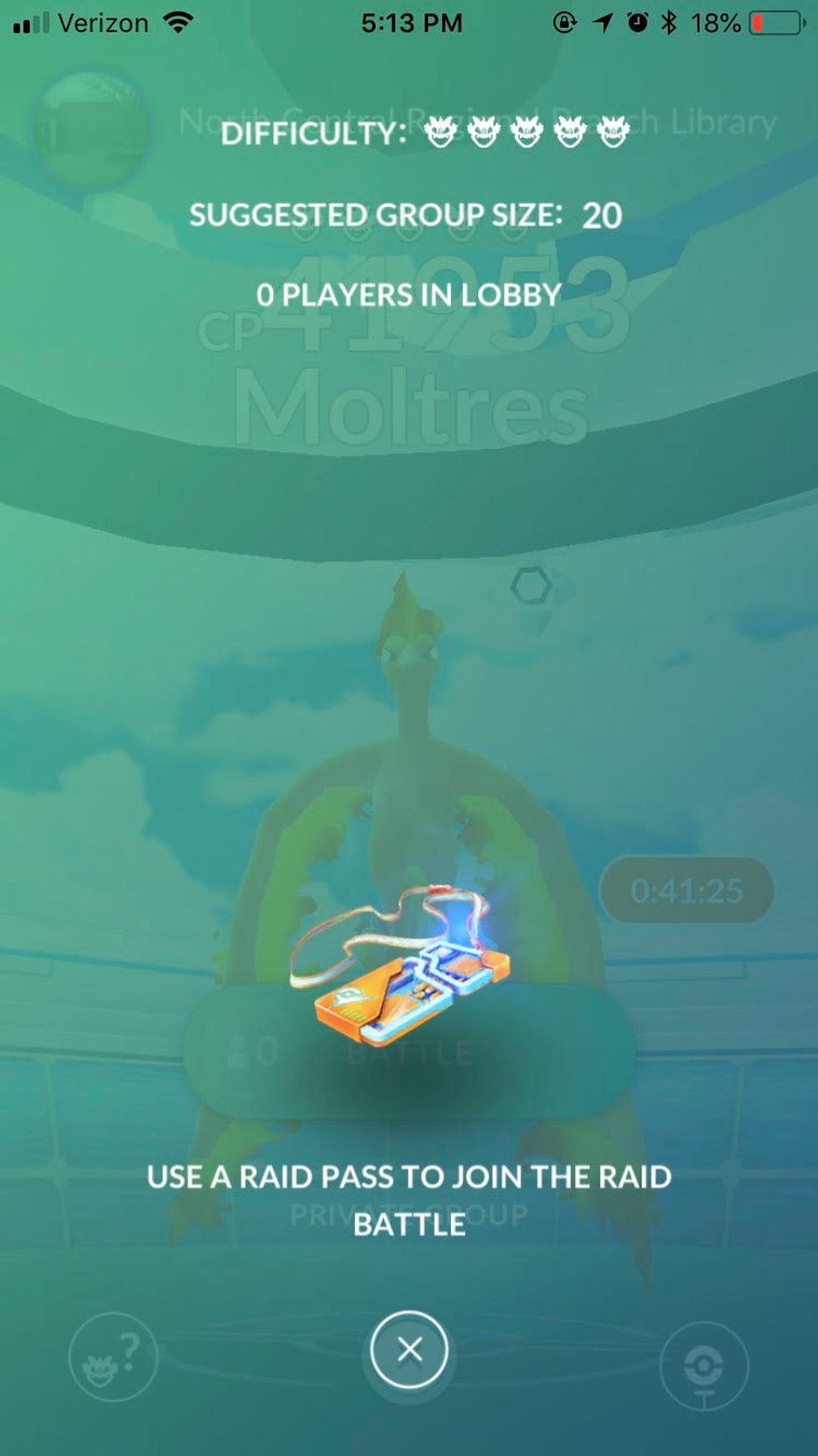 As mentioned previously, raids are attached to the gyms. They go on all day and end around early night time. The little angry heads below the pokémon indicate the difficulty (one for easy, five for hard). It's way easier to defeat a raid battle the more people you have helping. The team colors don't matter for raid battles; each team can work together. If the raid boss can be defeated in the allotted time, you will be given a chance to catch it.