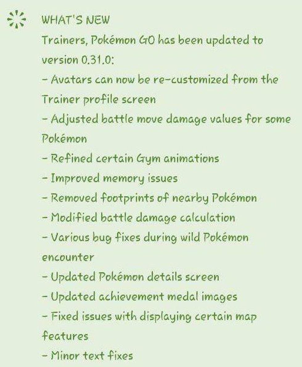 With the vast amount of users not only in the United States but also in Europe, Japan and the rest of the world, it would make only sense for Niantic Labs to update their popular successful creation of the adaptation to capturing Pokemon. Since the app came out, many users have been experiencing glitches, bugs and location issues, such as being in a body of water for a user when they are actually on land. With just these issues and many more, Niantic has gone back to the drawing board to update and fix these errors, as well as add new content and in the future, add newer generations of Pokemon (Right now, Pokemon Go only features the first generation of Pokemon in its lineup). Version 0.31.0 will include new features as well, such as being able to have the user re-customize their avatar from the Trainer Profile screen, and adjusted battle move damages for Pokemon when fighting at gyms.