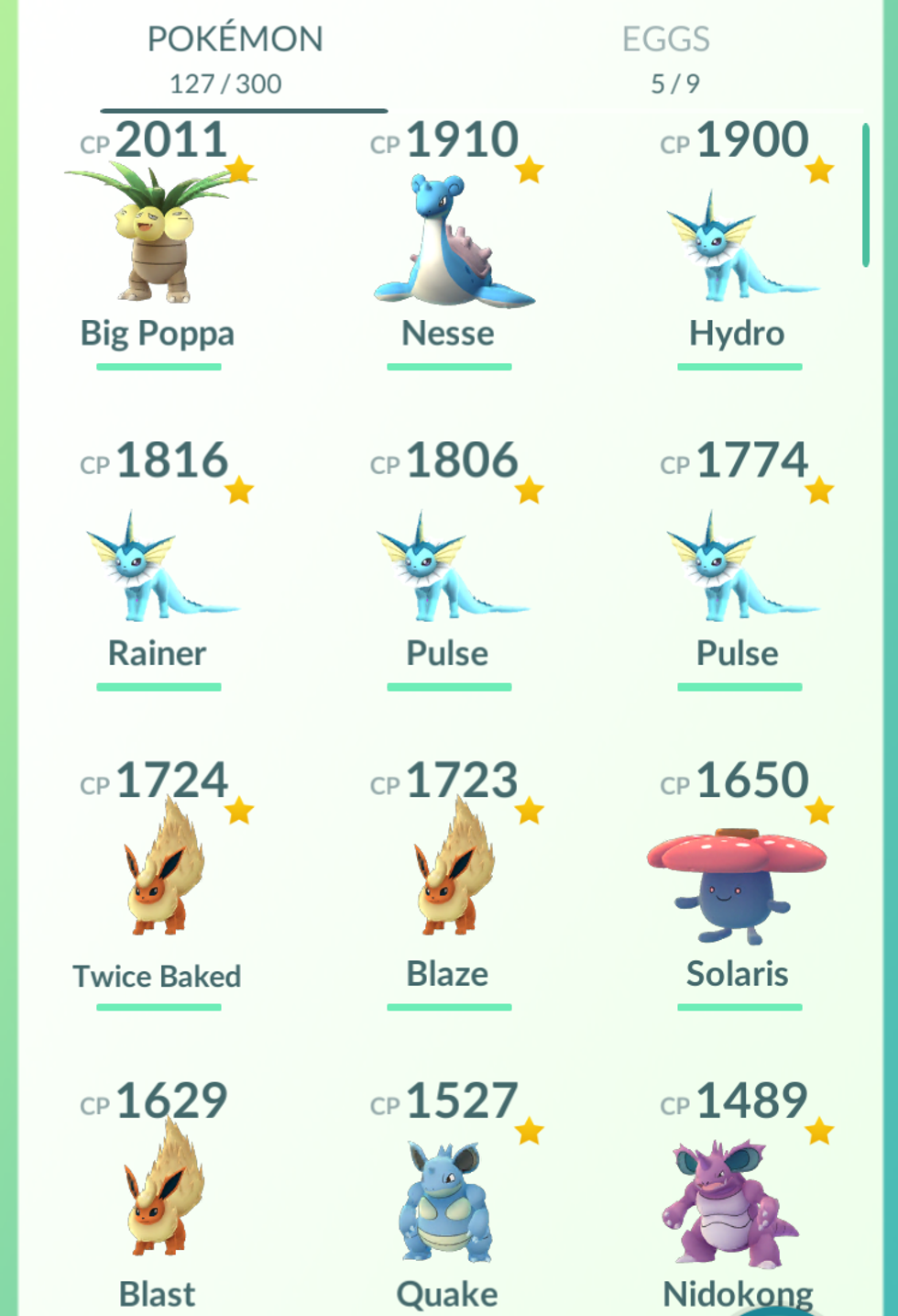 First and foremost one should never underestimate the power of eggs in this game, as eggs of all shapes and sizes offer more base stardust and species-specific candy than simply "catching 'em all" when it comes to filling out one's Pokedex, more often than not, the solution is instead to "hatch 'em all." Not only can hatching eggs grant you those extra candies required to evolve and power up your Poke pals, it also makes for much stronger Pokemon than one might find in the wild. Having said that there's no guarantee that after walking significantly more than 10 kilometers to hatch a 10k egg (because the game's distance detection is about as broken as the tracking system) you're going to end up with new Pokemon with epic stats, CP and perhaps even the move set that you're looking for. I was lucky enough to hatch a 1660 Lapras around level 20–22, equipped with Blizzard and more hit points than most of my top of the line Flareons combined, but that doesn't mean I haven't hatched my fair share of Pidgeys, Zubats, Weedles, Caterpies and Eevees along the way. For the record, Eevee being among the potential Pokemon to be hatched from 10k eggs is pretty insulting towards players everywhere, just as having to walk five kilometers/three miles (or more) only to hatch yet another Nidoran, Paras, Venonat or Drowzee can be excruciatingly painful. There's a great deal of luck associated with this part of the game, and it all revolves around your willingness to walk, walk and walk some more. In fact I have yet to see a single Ponyta in the wild, yet have hatched enough to evolve my very first Rapidash this week; however it ended up with the ground-based Drill Run power attack instead of even Flamethrower if not Fire Blast; rendering it all but useless.
