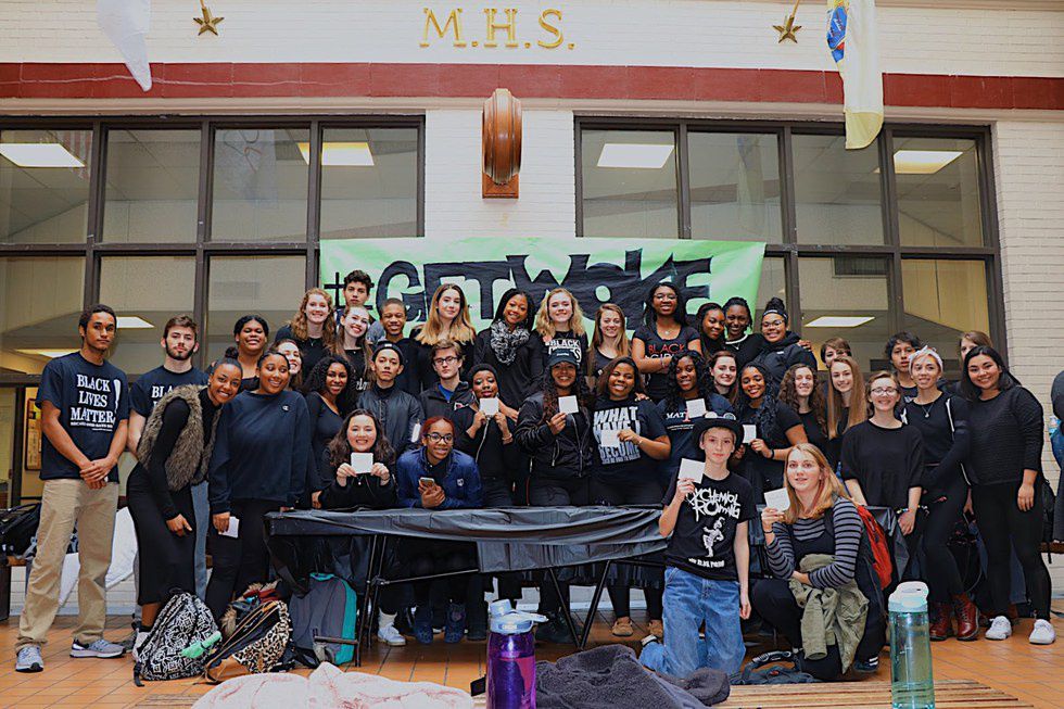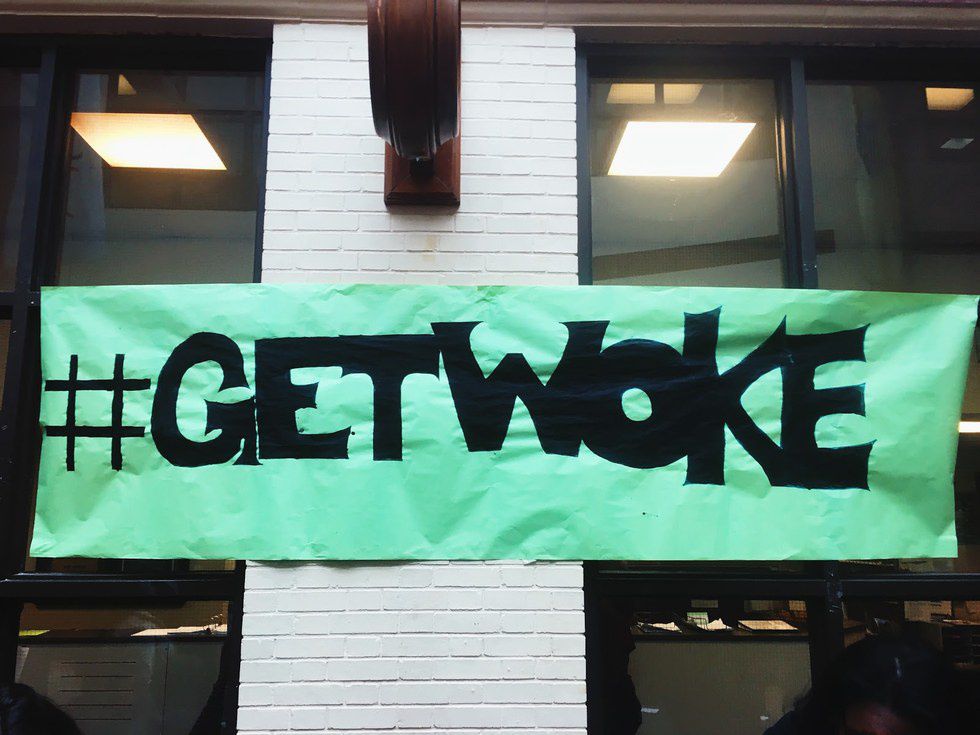 The next day we had a meeting with Mr. Lockman (one of the administrators at our High School). He expressed his concerns and we had a long discussion about the potential consequences of having a protest. While we both came into the meeting with very different intentions, we were eventually able to find a middle ground. We realized that having a protest would potentially bring negative and radical connotations to our club that would inhibit long-term progress in our High School. After extensive discussion, we decided that rather than “bashing Trump” we would promote political awareness, and our #GetWoke initiative was born. The term “woke” means to be awake. According to Urban Dictionary: “Being Woke means being aware.. Knowing what’s going on in the community”. The opposite of being “woke” would be being asleep- meaning that you are indifferent or ignorant to political issues. #StayWoke has been a popular term for some time now however we thought using the hashtag “GetWoke” would be more accurate since most kids were (and still are) “sleeping”.