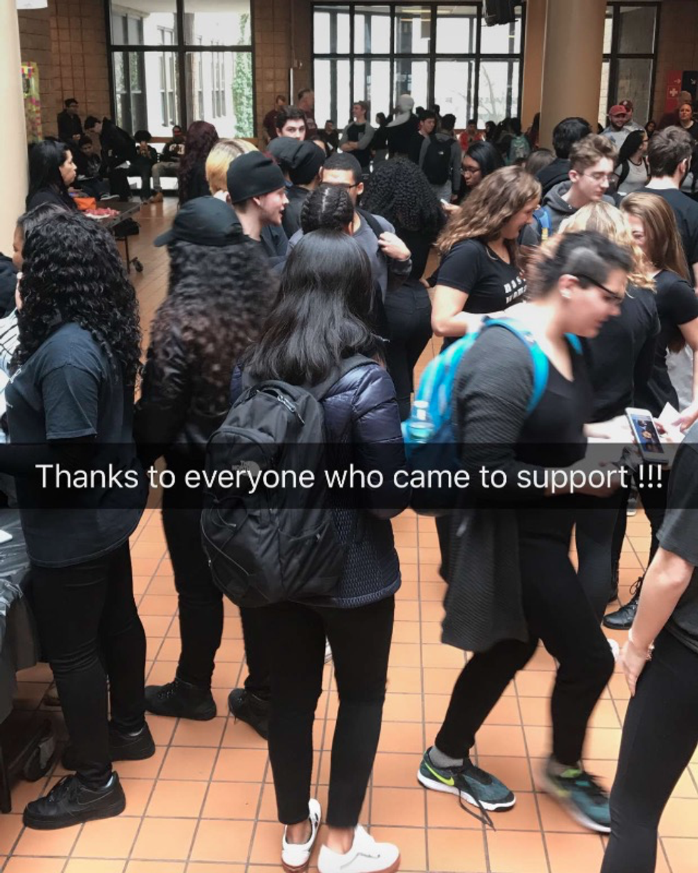 The turnout was greater than any of us expected. Other club meetings were canceled because so many students were coming out to show support. The main atrium filled with students wearing black in support of our cause.