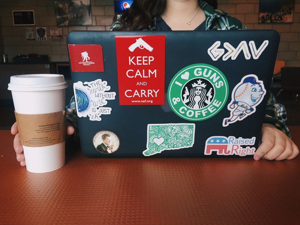 My professor told me that multiple students had gone up to him after class and expressed that they felt "uncomfortable" looking at my stickers, specifically the two that are aimed at guns. He told me that they feel "almost unsafe" and that it "offends them to look at." I was shocked by this. Frankly, I cannot understand how a pro-gun sticker on my computer offends someone who sits across the room from me in a college classroom. I am allowed to express myself freely under the First Amendment of the United States Constitution.