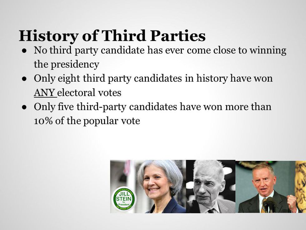 To a greater extent, parties are a problem because they divide us. Along with the aforementioned uninformed people, many informed individuals will also stand divided simply because they are from different parties. Rather than listening to each other on valid points and working together to elect leaders that move us in the best, we argue on whether it must be a Democrat or Republican. That cannot even be said for the lesser known parties whose voices are never heard outside of the faint roars of the Green Party which has quickly been surging in this presidential race with their incredibly progressive candidate, Jill Stein.
