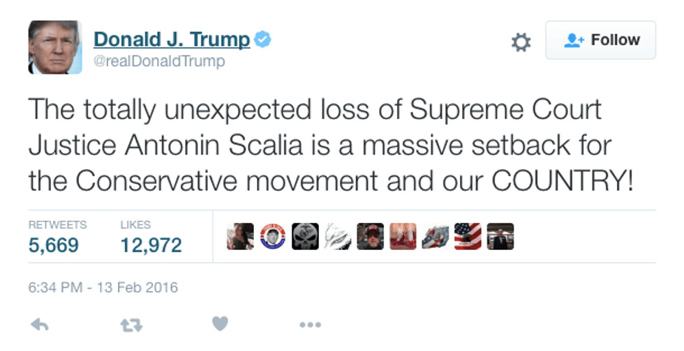 Macro Rubio, who was speedy to make a statement, said, "Justice Scalia was one of the most consequential Americans in our history and a brilliant legal mind who served with only one objective: to interpret and defend the Constitution as written." Rubio continues to say that "The next president must nominate a justice who will continue Justice Scalia's unwavering belief in the founding principles that we hold dear" note his not-so-subtle hint that the NEXT President must nominate Scalia's successor.