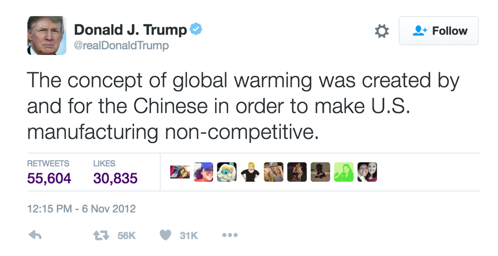 Everything a politician says is either scripted by more savvy architects of political construction, like a playwright writes for an actor, or it is such an ambiguous or obvious statement that any harm it might cause cannot be stuck to the administration. Take Donald Trump's statement about global warming, in the header image. This is a joke or a heavily distorted version of what he was trying to say. What you have to understand is that politicians say things that suites the media where they say it. This is a perfect example because it makes you say WTF? What could he mean? Is this man INSANE? I AM GOING TO WATCH EVERY INTERVIEW HE IS IN TO SEE IF HE CAN EXPLAIN HIMSELF! This last statement is what Mr. Trump is fishing for, because in fulfilling it you are buying in to his celebrity. You are giving him attention, and politicians, or public 'business' figures, like celebrities, need attention to survive.