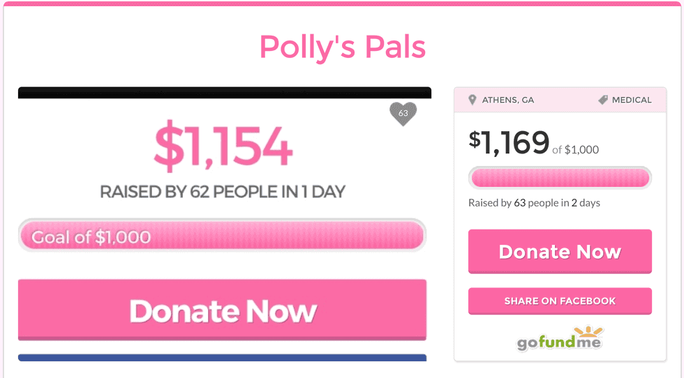 Megan says, “We decided that we wanted to give her a nice gift card or something for Christmas because she’s so nice and works so much but we just never got around to it. Then when we got back from winter break and [we] asked how her break was she said she'd been sick and in the hospital and [she] told us she was going to need surgery to remove a tumor in her stomach in February.” Megan and Suzanne decided to create a “Go Fund Me” page in hopes of raising money to help with Polly’s medical expenses, groceries and household needs. The page description includes “She has a very special place in the Bulldawg nation and in our hearts”.
