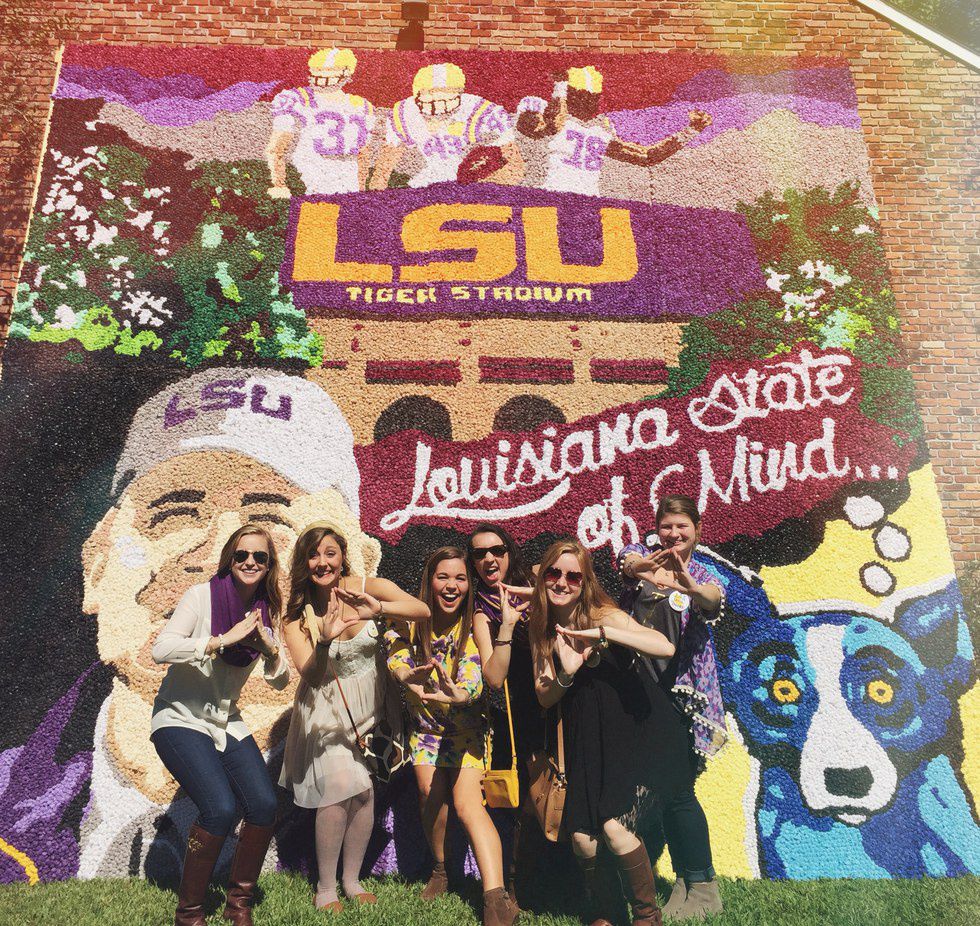 The greatest part about pomping goes right along with one of the things I love most about being in a sorority: the ability to combine your own small efforts with those of 300 others, and create something massive and memorable. There's nothing like the pride you feel seeing the completed work gracing your lawn on Homecoming Day, the weeklong hard work of you and your 300 sisters. The excitement of seeing everyone else's hard work as well contributes to that familiar feeling of spirit and pride that comes from being a student here at LSU.