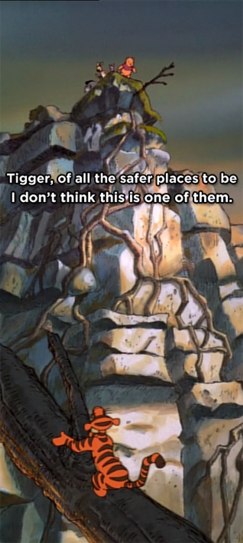 Tigger: Oh, relax, Piglet, old pal. There's no difference between plunging 10,000 feet to the jagged rocks below and tumbling out of bed.