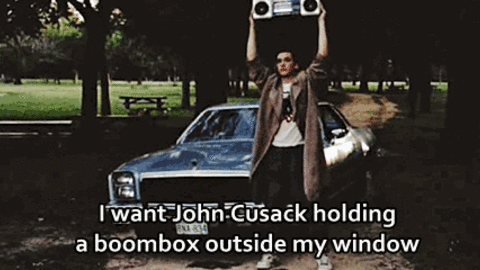 Picture this. Your crush is outside of your window, playing "In Your Eyes" by Peter Gabriel on his boom box, or I guess in this day and age, he would be playing "Yellow" by Coldplay through his car's stereo.