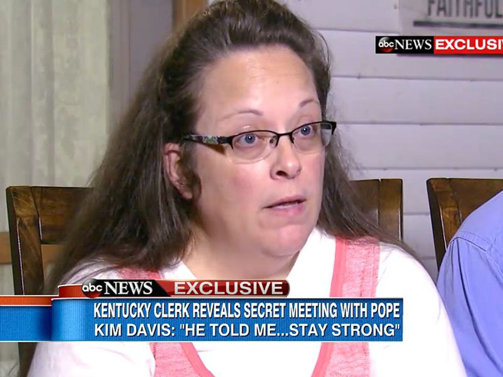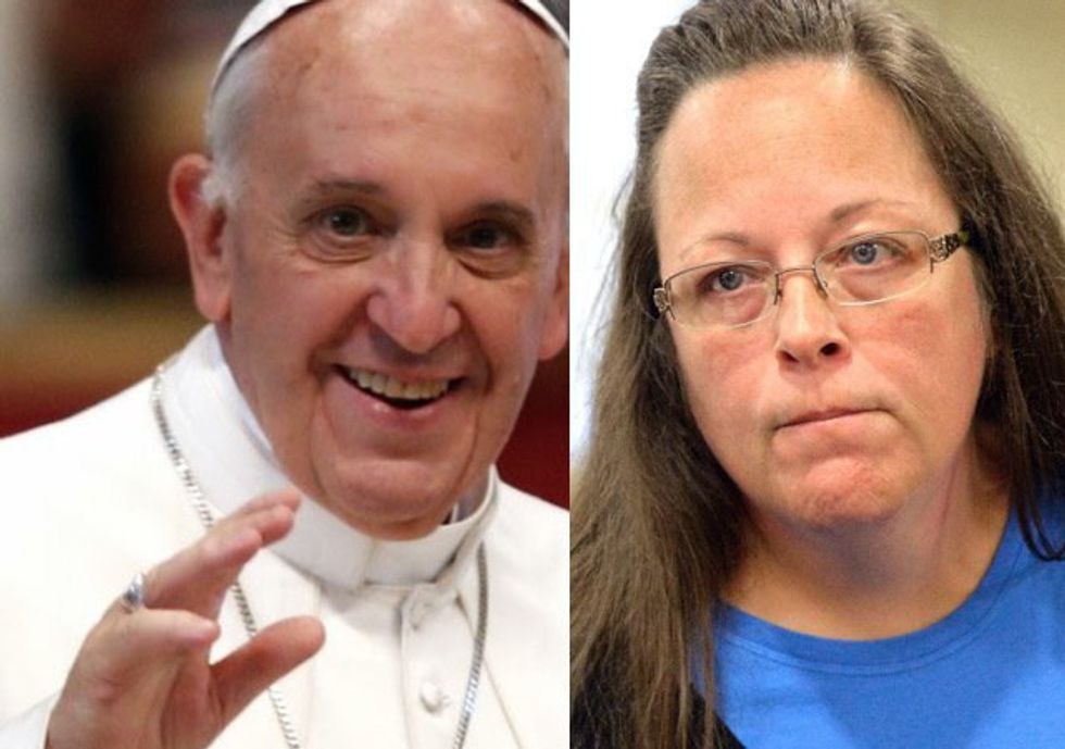 Last week Pope Francis made his rounds to several U.S. cities, making stops along the way to celebrate mass with Catholics from all over the country and the world. During his visit, he also stopped for a brief meeting with Kim Davis, the marriage license clerk from Kentucky who was arrested for six days earlier this month due to her refusal to issue marriage licenses to same-sex couples.