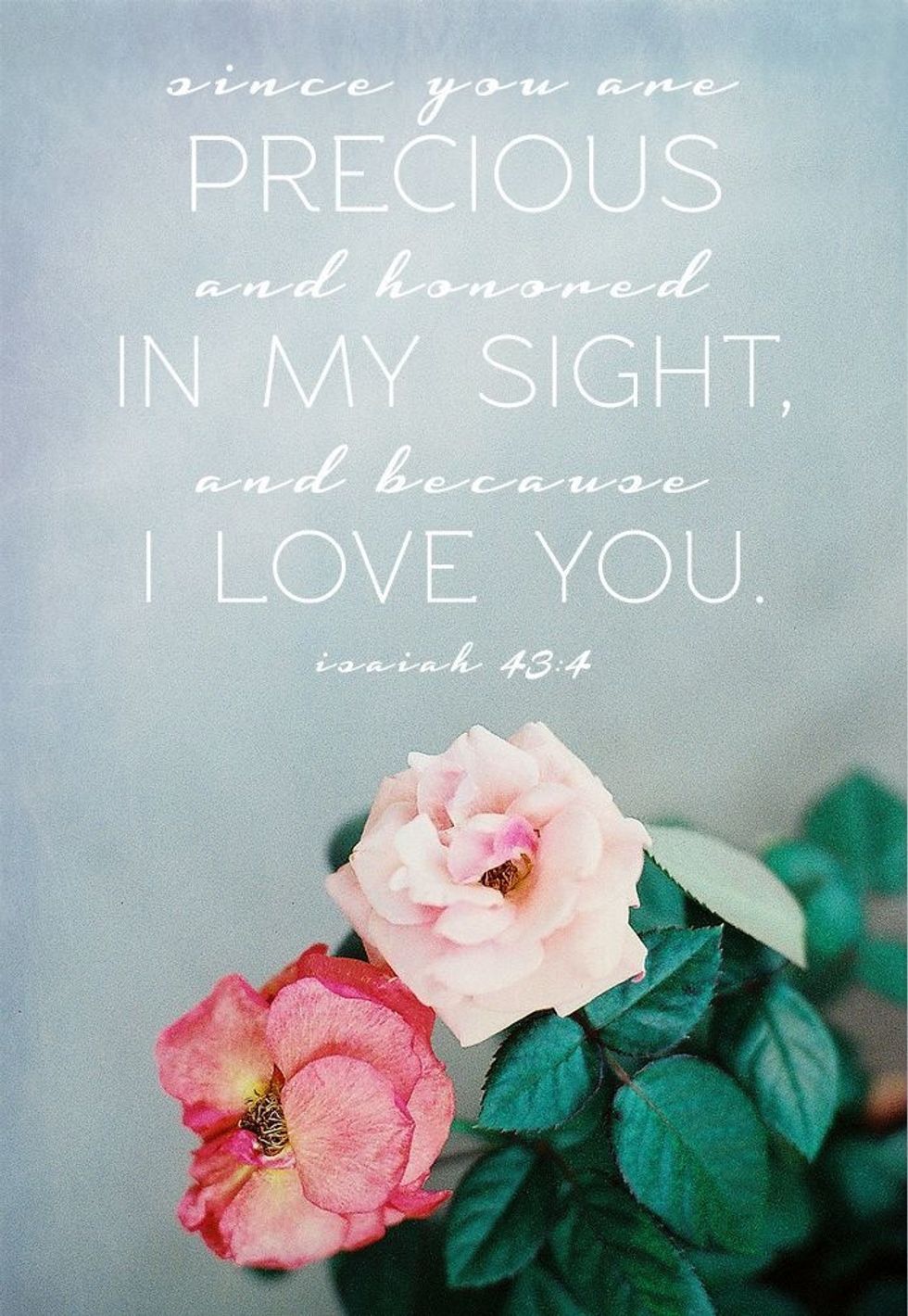 7. "Since you are precious and honored in my sight, and because I love you, I will give people in exchange for you, nations in exchange for your life."-Isaiah 43:4