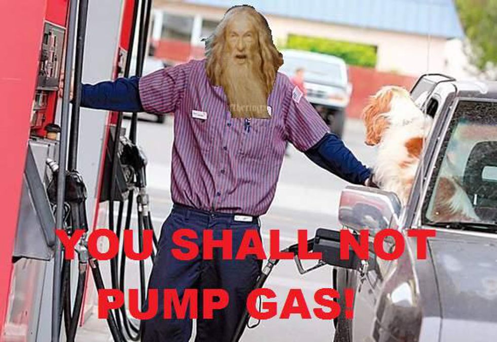 We sit in our cars while someone pumps our gas. That being said, I know how to pump gas, but I can count the times I have done that on my hands. Oh, and we don't pity the out-of-staters that try to pump their own and get yelled at. That's illegal, you fools.