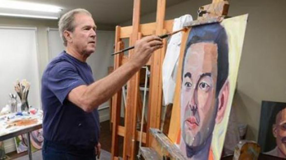 After leaving office, President Bush spent time reading Winston Churchill’s essay, “Painting As A Pastime.” He says this made him want to try painting as his own hobby. Not long after, he hired a painting instructor and asked her to help him discover his “inner Rembrandt.” After five short years of painting as a hobby, he decided to use his newfound talent for good. I guess you can teach an old dog new tricks, huh?