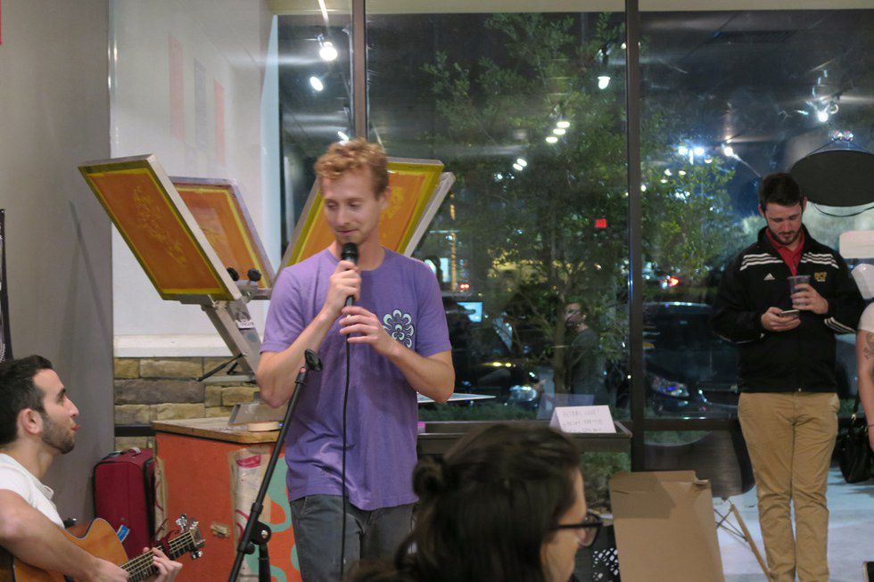 Harry puts on interactive art shows and I got to attend one on Valentine's day. There were seventy people in Vespr Craft Coffee to screen print with Akyros. There was a press with three designs and anyone could give one of the baristas ten dollars and get any drink (but not a cocktail) and a stamp on their hand. They would then show Harry the stamp to prove they were interested in creating and he would guide them through the process, all the meanwhile, Jared Bakst of Casaveda was playing solo. "People experiencing nightlife in a fun, creative way is a hell of a lot better than blowing fifty to one hundred dollars on alcohol," Harry had said.