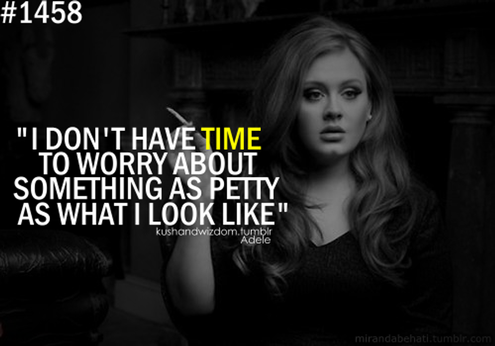 She recently took the world by storm with her surprise single (if you haven't heard "Hello" by now, it's a must as soon as you finish reading this), and her kick-ass album that we can all relate to. Adele is not only a superstar, but she's too real and I love it. She's not your average singer: She prefers a no-fuss type of lifestyle in London with her son and boyfriend. Also, if you're a huge fan like me, then you know that people have questioned her body size time after time in interviews. She so effortlessly shut down the body-shamers and teaches us that it really doesn't matter what size you are, but it's about everything else. Pure talent and confidence will take you far, not looks (even though Adele is naturally gorgeous, but so is every person on this earth).