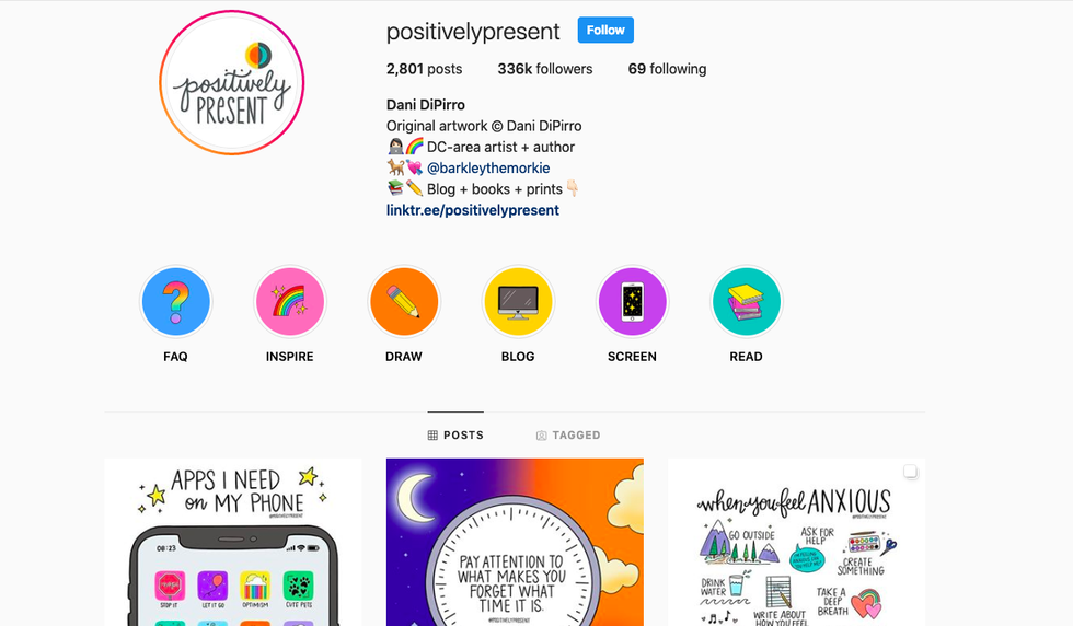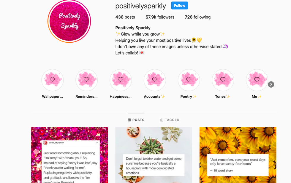 @positivelysparkly posts exactly what you would think: colorful (and sometimes sparkly) images with inspirational messages and reminders. They also post a lot of things on their story!