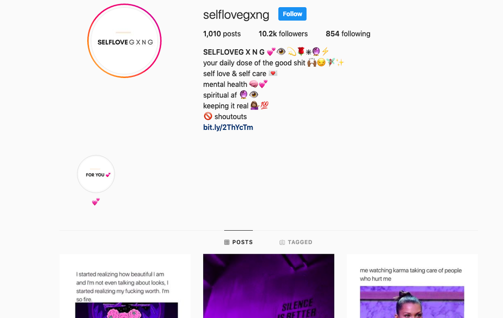 I love this account and its attitude! This account posts a lot of messages related to loving yourself and being confident. What else could you ask for?