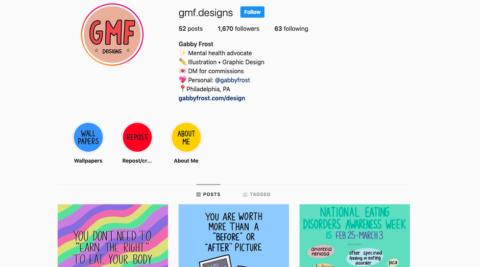 Gabby is CEO of Buddy Project, a nonprofit organization that connects people to "buddies" so they feel less alone. She also loves graphic design and makes really cool graphics related to mental health. She also posts wallpapers on her Instagram story every Wednesday!