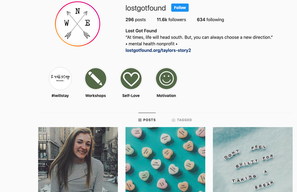 @lostgotfound is an organization that holds presentations about mental health in schools. Their Instagram feed consists of the stories of people they have interviewed. These stories are so inspiring and remind me of the strength that I have inside of me.