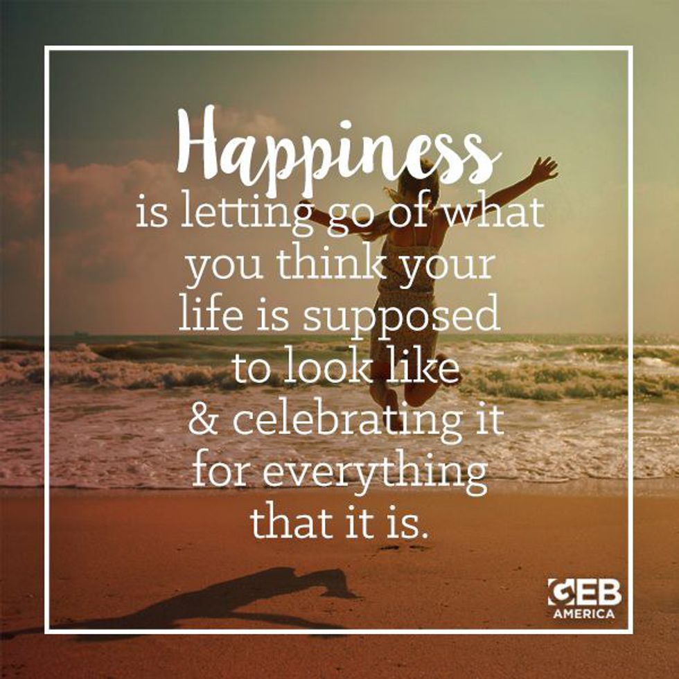 3. "Happiness is letting go of what you think you're life is supposed to look like and celebrating it for everything that it is." - Mandy Hale