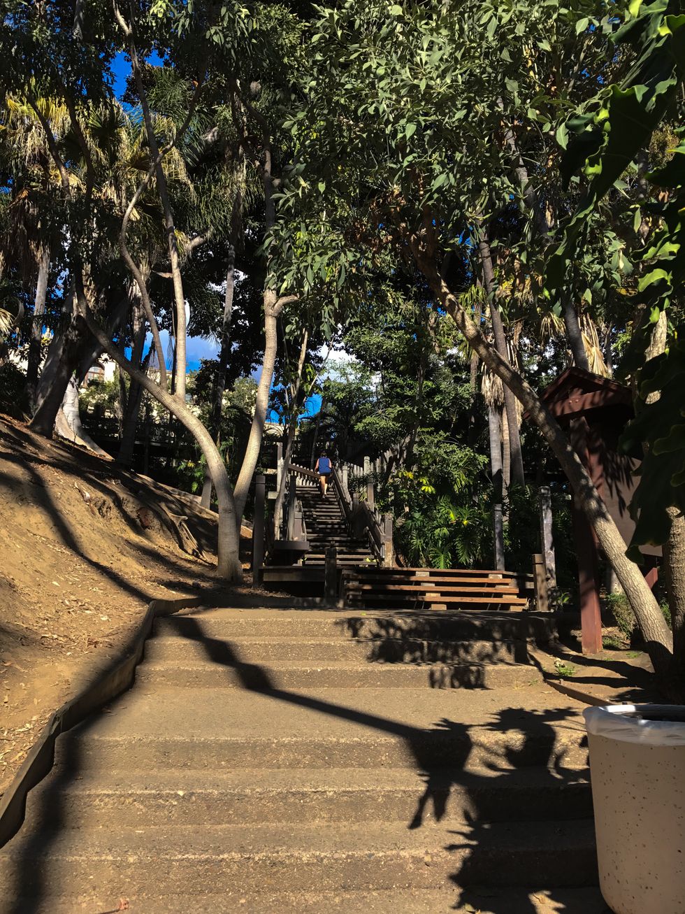 We ended up walking through a dog park to get to an open trail, leading us up a hill and across a street. Mind you, we were not at all prepared for such exercise. At this point, we could have easily been exclaiming about the struggles of not having a car or blaming public transport, or even blaming ourselves. But instead, we were both laughing at it all. It was ridiculous, it was great. Besides, we were getting a killer view.