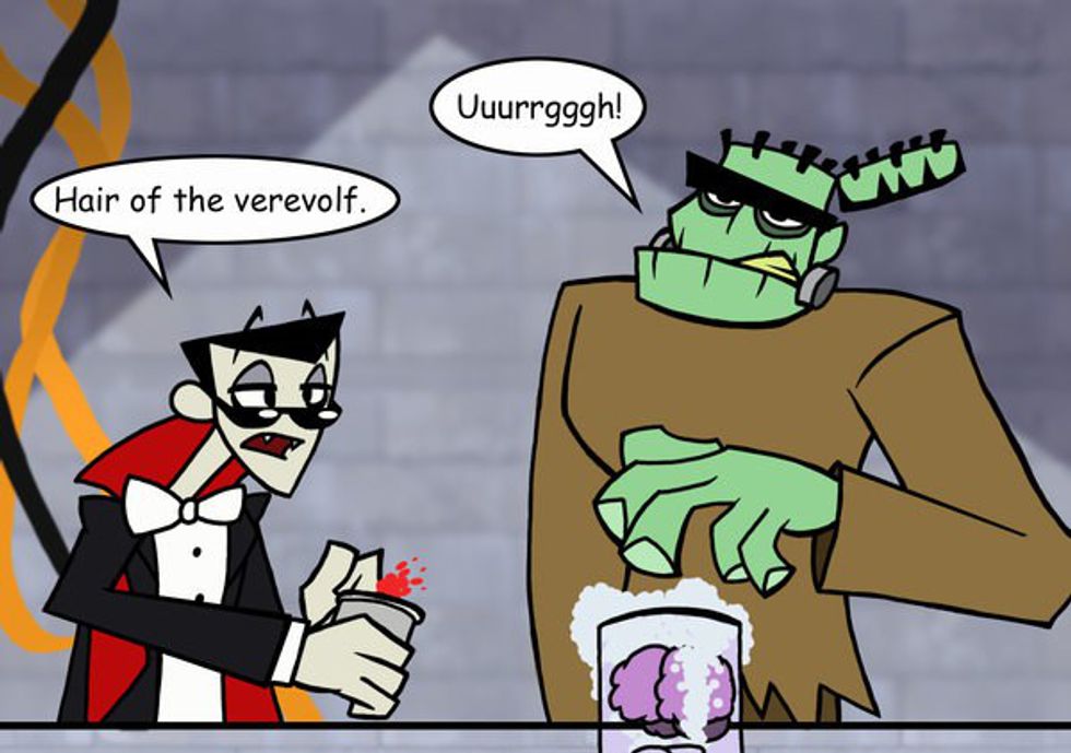 Let's just get the worst one out of the way now. What else could be worse than the culminated hangover from the previous evening's Halloween activities that has boiled over from the cauldron of the stomach? Oh yeah; when that concoction from said stomach cauldron comes foaming up after getting home and being comprised of drinks named things like "Witch's Brew," "Poisoned Apples" and "Satan's Spit." You'll wake up feeling even worse than death itself and wishing for a "Hair of the Werewolf."