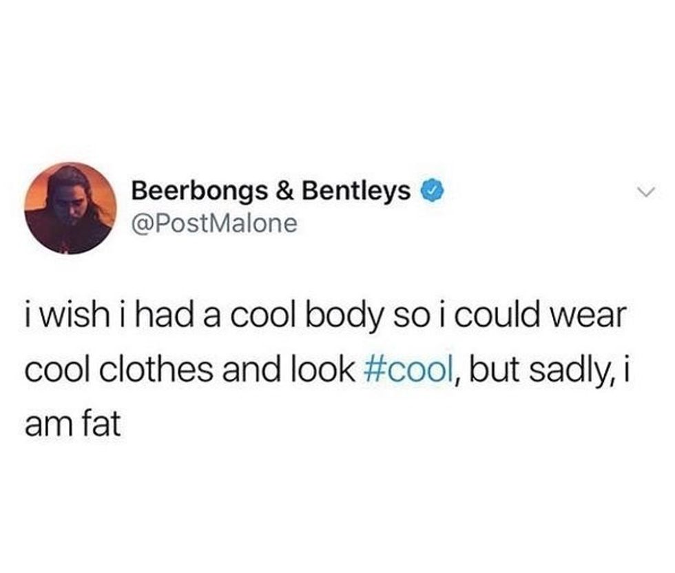 Post's humor is one of my favorite parts of his personality. He keeps it real while also being lovable. Post Malone's twitter makes you wish he was your best friend.