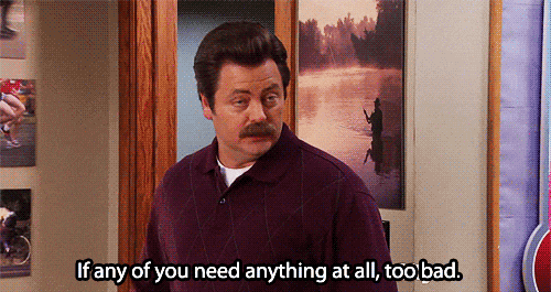 One of the best (fictional) men I know is Ron Swanson from Parks and Recreation. If you don't know him, then get to know him. Trust me, you won't regret it. Except maybe a little regret for the binge watching of Parks and Recreation. However, Ron Swanson is the spitting image of my post midterm feels.