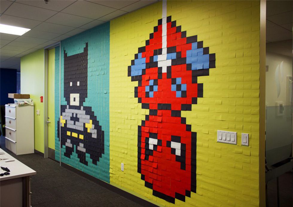 Going along with the idea of post-it note murals another use of these squares has been pranks. I have seen pictures of whole rooms or objects covered in post-it notes. I have personally only done the inside of a locker multiple times and it just blows people away by the surprise. I find this to be a great pank as it has very little chance for damage and can be set up quickly with little supplies. So if you ever need a way to pull a fast one on someone look up some post-it note pranks and get to work!