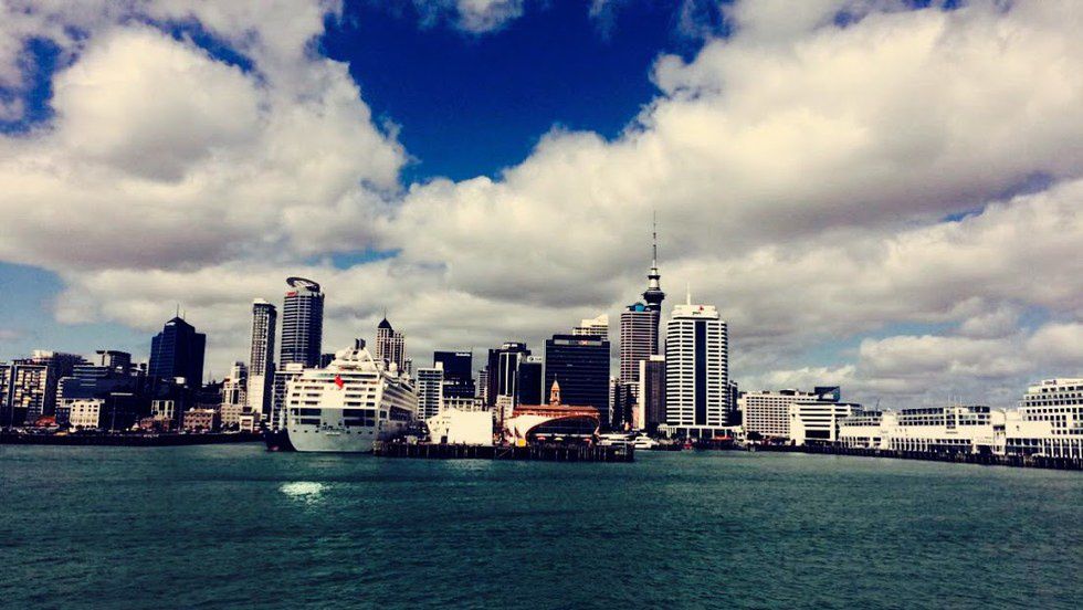 As I believe I briefly explained before, this is the city of Auckland - the most populated city on the North Island, currently where I work. I snapped this photo from my daily commute to work a couple of weeks ago, from the top deck of a ferry headed to the city's wharf (towards the right side of the photo). Quite the skyline!