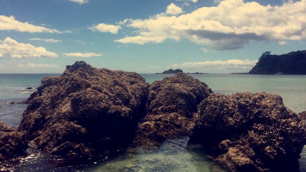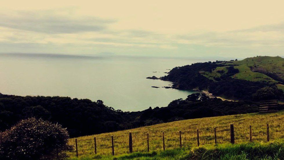 A bit further out on the island from my little home is Whakanewha Reserve. Pronounced fa-ka-nee-wa, the reserve is about an hour's bike away, but holds heaps of mountain biking trails spanning through dense forests and open ranges like this one above. I came flying out of the woods on my bike to this and was blown away by the contrast of green, blue and rusted rock. The variations in landscape throughout this whole country are nothing short of bizarre.