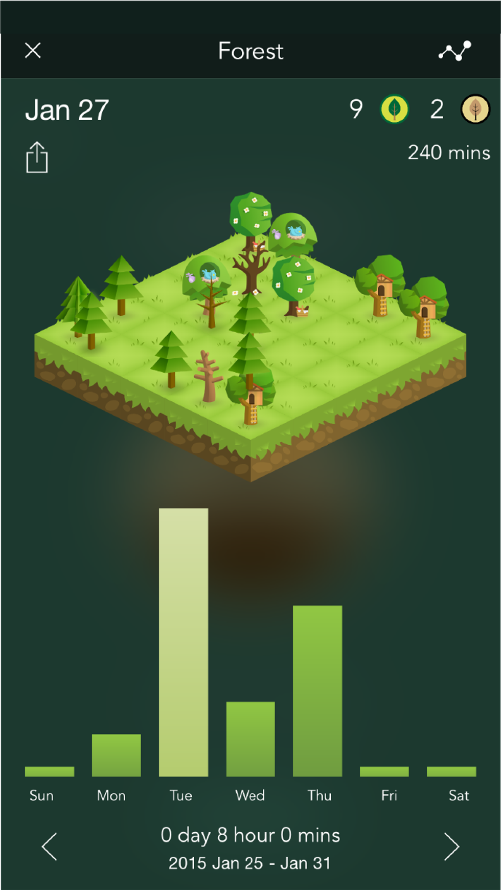 There are a couple of other neat features, including being able to tag your trees by different categories, like work, study, social and rest, and then accessing an overview of how much time you are dedicating to each genre. Besides that, you can view how many trees you are growing each day, keeping up with how much your forest is progressing and even comparing it to your friends' forests.