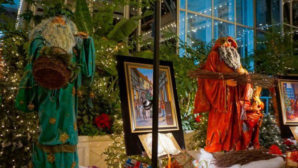 My personal favorite part is the Spirit of Giving Around the World Display, but my family and I just call it "the Santas." Statues of the traditional "Santa Clauses" from different countries around the world circle the sitting area, each more grand and dazzling than the next. Next to each sits the history of each one, and it makes the history nerd in me soar. Each Santa represents it's country's culture, tradition, and Christmas spirit, and it's amazing to see how Christmas is celebrated around the world. Plus, most of them have glittery, metallic paint, and I love glittery things.