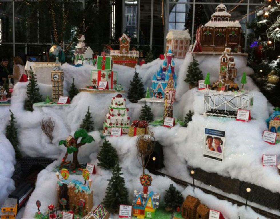 The PPG Place Wintergarden is a brightly lit, glass-encased large sitting area at PPG Place, which is six beautiful glass buildings in the middle of downtown Pittsburgh. Each December, this area becomes a literal Wintergarden, with the Spirit of Giving Around the World Displays, the Gingerbread House Display, musical performances, a hot chocolate cart, and an outdoor skating rink.