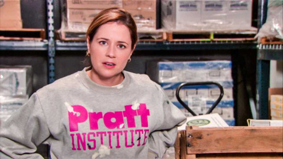 In Season 5, Episode 1: "Weight Loss," Pam announces she is going to attend Pratt. It's mentioned a few more times on other episodes as well, and a few scenes were supposedly filmed on location.