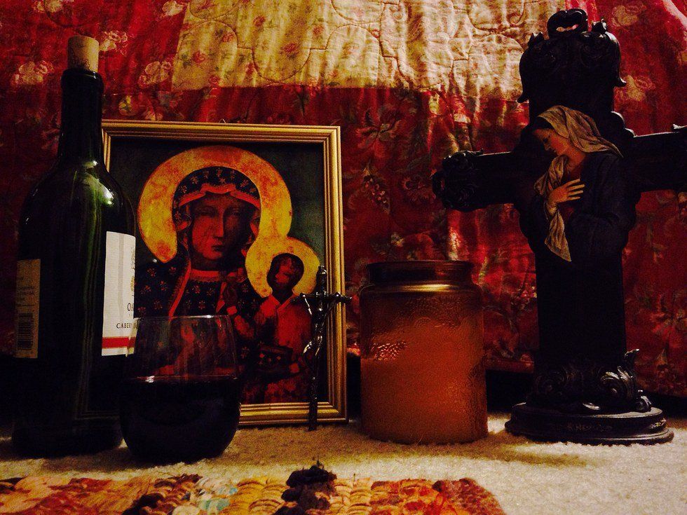 Anyone that has stepped foot into my roommate's and my home cannot help but notice two important details: statues and drawings of Mary and Jesus and our 50-bottle wine collection on display in the kitchen.