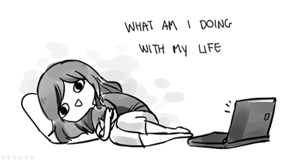 But as I came to college, something changed. Everything was more than just school projects. The daunting word--the future--came into play. And then I felt scared of life rather than wanting to enjoy everything it was offering me. I looked at my peers and saw passion and determination, but I looked at myself and saw myself just searching for something. I wasn't sure what it was.