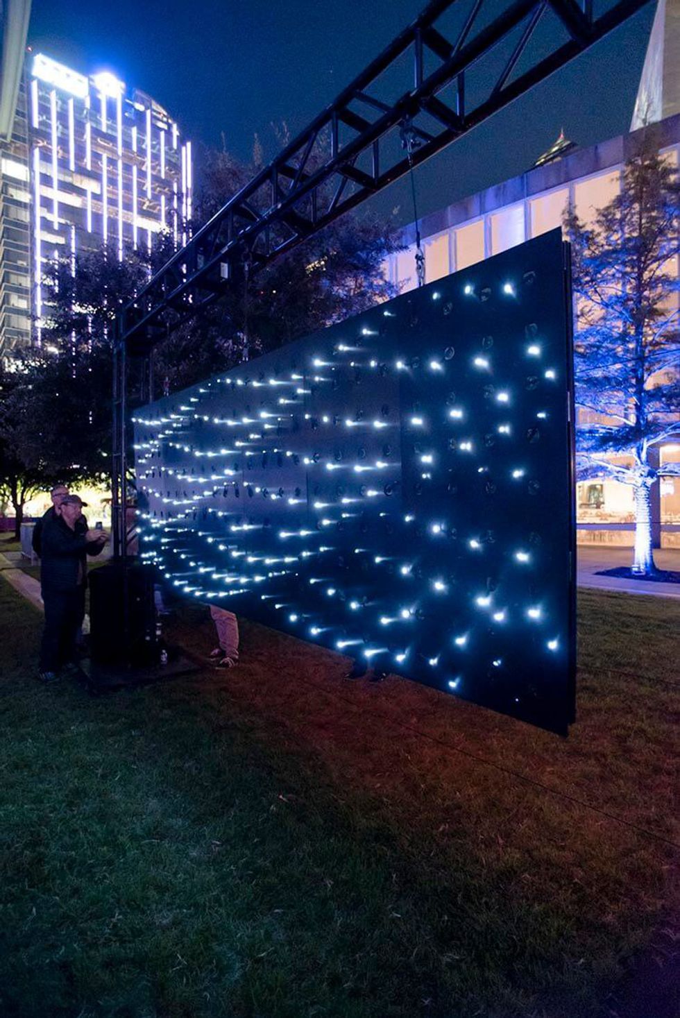 This past weekend, Dallas played host to Prelude: A Preview of Aurora 2017, a free curated outdoor exhibition of ten large-scale audiovisual works of art in advance for next fall's return of the biennial Aurora event to the Dallas Arts District. This was a much smaller, more contained event than Aurora, which stretches from the Winspear Opera House along Klyde Warren Park, and around the Dallas Museum of Art and Nasher Sculpture Center, but Prelude was more than enough to whet an art lover's appetite for next year. All the works displayed made use of light, sound, movement, and some viewer interaction.