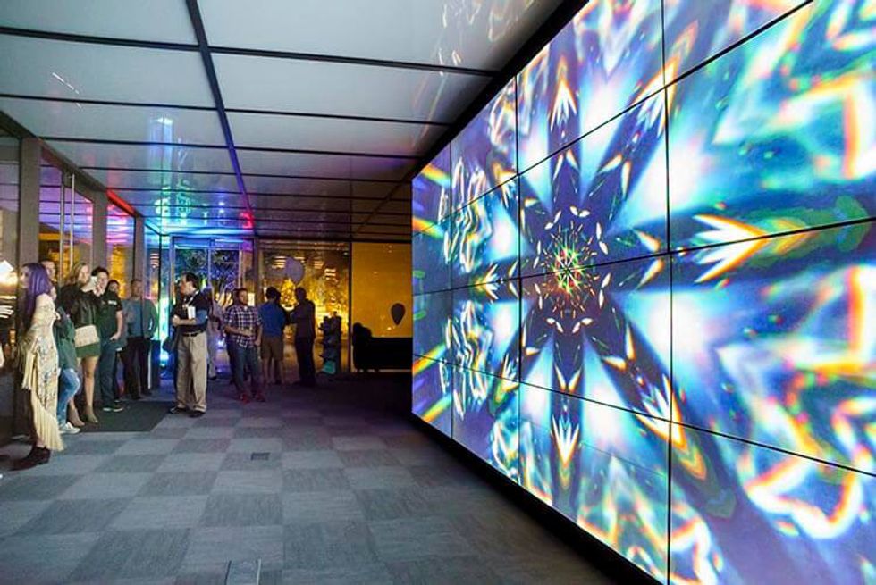 Among the works displayed (which is also one of the easiest to describe) was what was billed as a "lumino kinetic" piece called Light Wave by teamVOID, which is comprised of artists Junbong Song and Jaehyuck Bae. Using an LED light board and a motor, they created the illusion of ocean waves in motion, among 19 other patterns. Light Wave seemed to be a crowd favorite and may be an even bigger draw if it returns for Aurora next year.