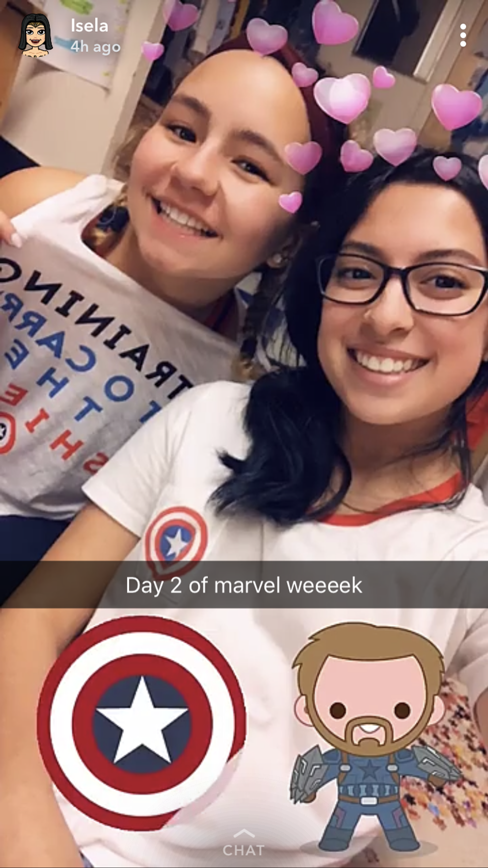 Shoutout to the best roommate ever. She loves Marvel just as much as I do and transferring here this semester I was nervous, but it has been one of the best experiences yet! Thank you for being nerdy with me.