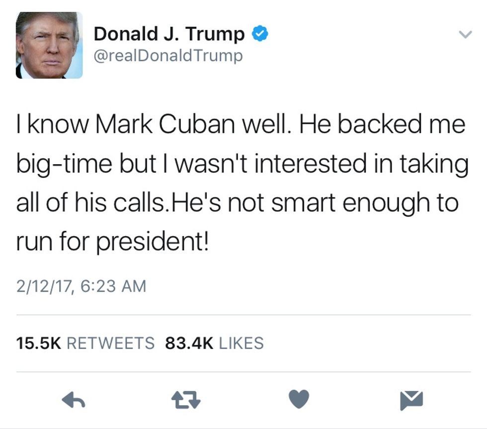 President Donald Trump has a way of making a splash. Since he initially announced his intention to run in the presidential election, he has found a way to cause a ruckus. From grandiose announcements of intense change to accusations at other politicians and business leaders, the man does not like to be told he's wrong. So naturally, as any mature adult would, he took to Twitter.