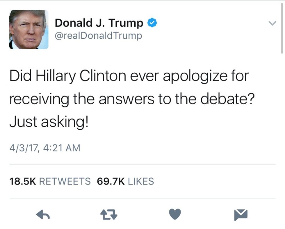 President Trump has no limits as to what he will and will not discuss on Twitter. Five months after the election, he is still out to get his previous opponent, Hillary Clinton. A graceful winner whom we can take pride in? I don't know who you're following, but it isn't this guy.