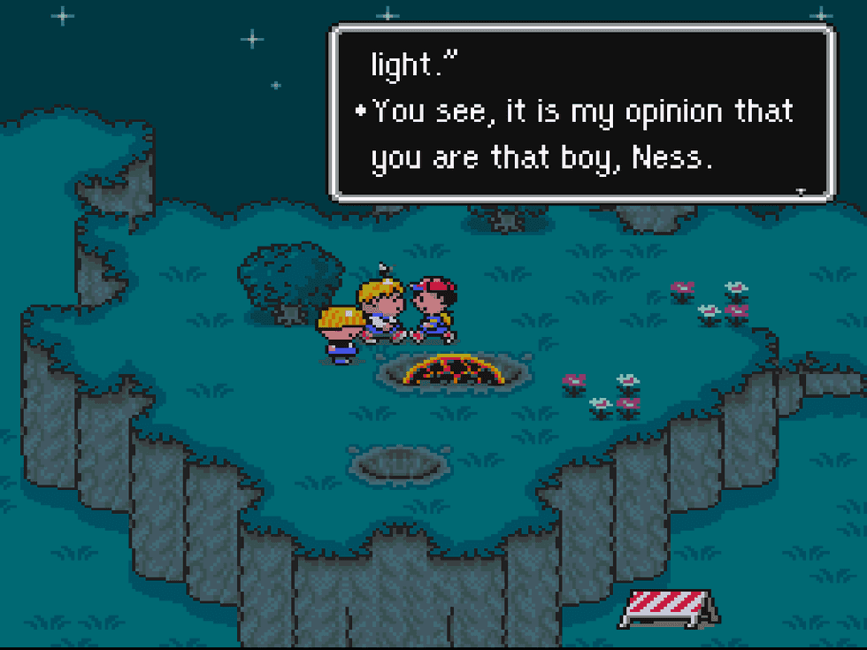You play as Ness, a young boy who investigates a meteorite crash in his hometown with his neighbor Pokey. They find out that the meteorite is actually housing a bee from the future, Buzz Buzz, who tells them that an alien called Giygas has enveloped the world in hatred and turned everything into dangerous monsters. Buzz Buzz tells Ness that he is destined to save the world and instructs him to collect melodies to gather the power needed to stop Giygas. Ness sets off and meets the other party members, Paula, a girl with incredible psychic abilities, Jeff, an inventor, and Poo, a ponytailed martial artist. Playing through the game feels like a real hero's journey and every little detail of the game feels like a purposeful decision of art such as the Happy Happy Village blue cultists clearly being a reference to the KKK which sounds insane on paper but it comes off as more quirky, goofy and weird and I love it.