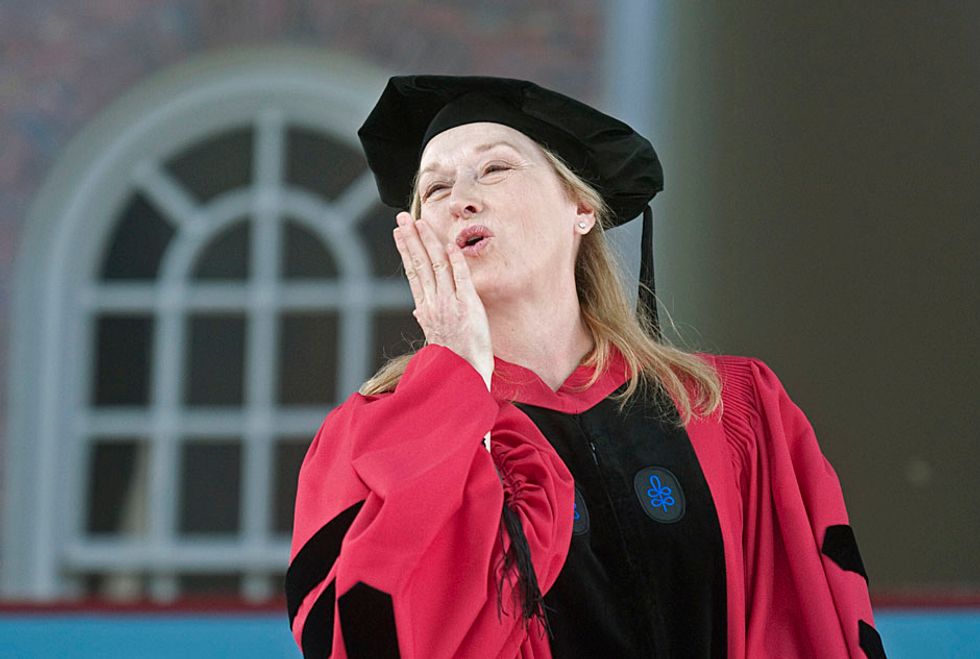 Meryl Streep is regarded by the IMDB as the greatest living actress (their words), and by others as the biggest bad-ass onscreen (my words.) Streep's career officially launched in 1975, and since then she has received 19 Academy Award nominations and 3 Academy Awards for her roles as "hotties" like Madeline Ashton in Death Becomes Her, nurturers like Aunt Josephine in A Series of Unfortunate Events, true renegades like Miranda Priestly in The Devil Wears Prada and Margaret Thatcher in The Iron Lady. While juggling a truly successful acting career and a personal life, Streep decided to make her education a priority. It's no wonder that she was able to make juggling three men in the 2008 hit Mama Mia! look so easy.