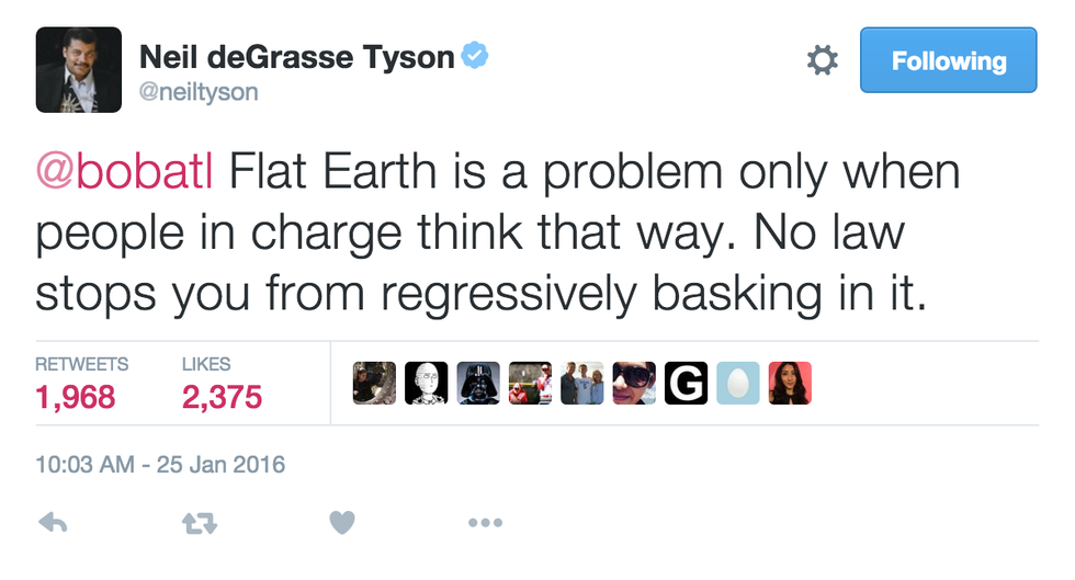 Having the sense of humor he does, Tyson decided to use the rap game as a stage to help people understand how science actually works. He then appeared on The Nightly Show With Larry Wilmore to once again assure the human population that the earth is in fact a sphere. And just to clear up one more thing B.o.B, airplanes in the night sky are just airplanes in the night sky, not actual shooting stars.