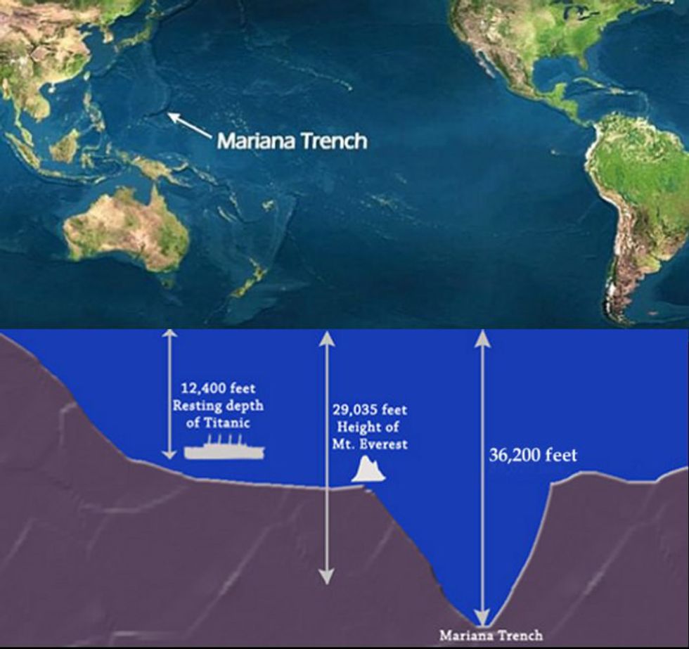 The Mariana Trench is so deep that if it was sitting at the bottom of the trench, there'd still be over 7,000 feet of water above it...