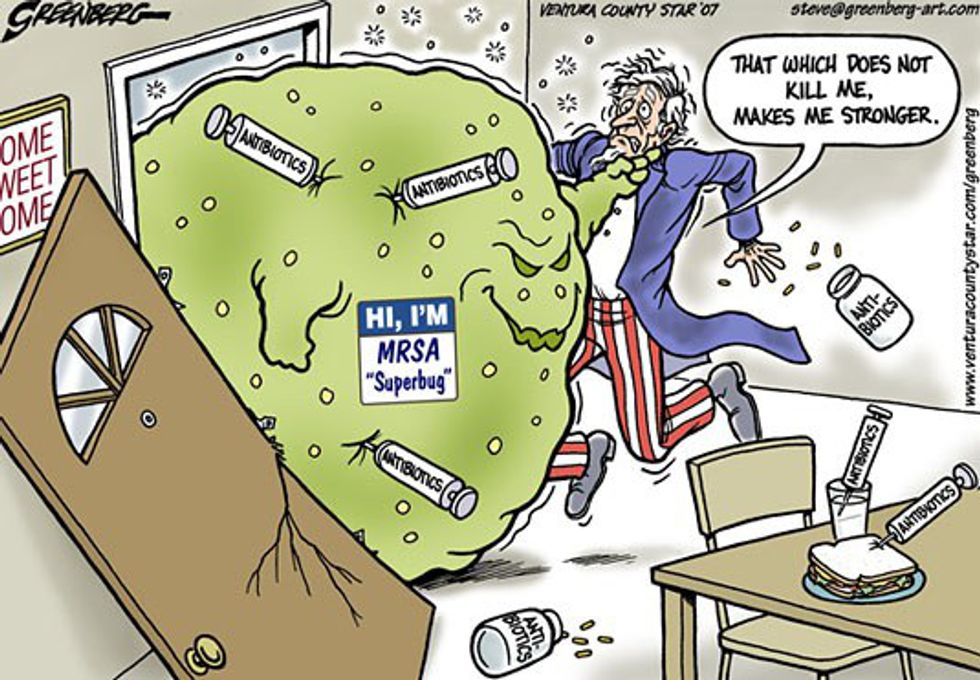 A lot of human antibiotic use is wasteful too, not just the aforementioned agricultural use. Of the 40 million people who get antibiotics in the U.S. every year, only 13 million actually need them; the rest have viral infections and cannot be treated with drugs.