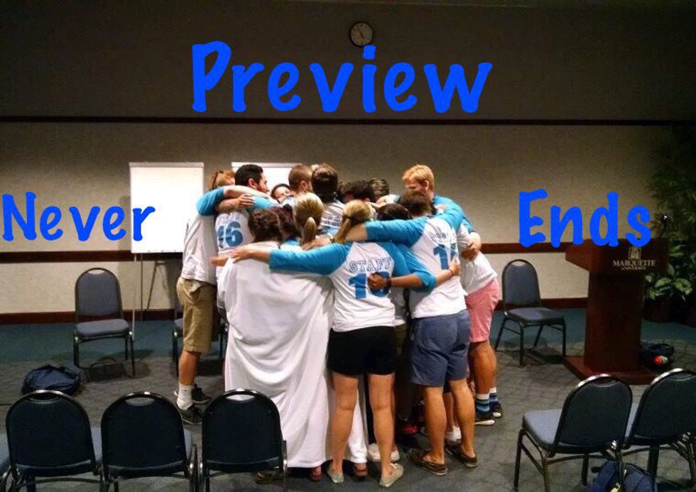 Work isn't always fun and — depending on what one does — it can easily be a drag and feel like it takes forever. Whether you are answering calls in an office, serving food at a restaurant or working with little kids at a day camp, it can all get a bit exhausting. The long days continue to drag on, and your personality and character seem to fade away. The anxiety one can get when you meet your fellow co-workers is another obstacle. Will you get along, become friends or even be able to stand each other? It's a new atmosphere, but I knew that when I was selected for Orientation Staff at Marquette University something special would happen.