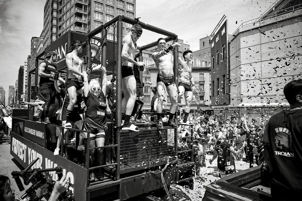Pride month has officially about come to a close, and just about everyone who attended NYC Pride on Sunday got to see a glimpse of Alexander Wang's campaign and capsule collection, titled, "Protect Your Wang" dance it's way down the crowded Manhattan streets on a black-and-white themed float. The brand collaborated with Trojan a second year to expand on their campaign. Last year's Pride consisted of dancers and models on the parade float handing out condoms to those attending the event, as well as a donation to The LGBT Center of New York to help support sexual health organizations.