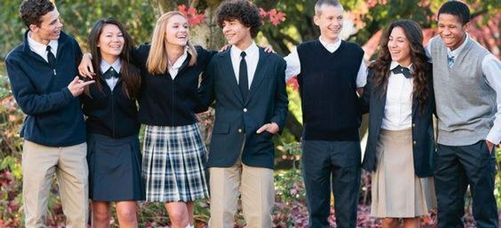 Yes, uniforms. Do you remember that moment after you graduated and you were about to go off to college and you looked in your closet and smiled knowing you would never have to wear it ever again. But then you looked at you regular people clothes and cried because you didn't own enough to wear so some shopping had to be done. Though you hated those uniforms, it made getting ready in the morning very easy since there wasn't many options from which to choose.